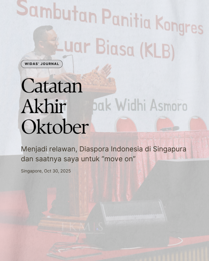Dengan terpilihnya kepemimpinan baru, tugas saya pun selesai. Jabatan komisioner saya berakhir, dan saya ingin menyampaikan terima kasih sebesar-besarnya kepada para pimpinan yang sudah memberi amanah, juga kepada teman-teman diaspora Indonesia di Singapura yang turut membantu saya menjalankan tugas ini.
