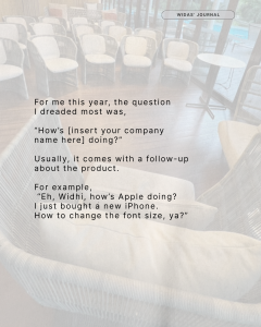 “Eh, Widhi, how’s Apple doing? I just bought a new iPhone. How to change the font size, ya?”