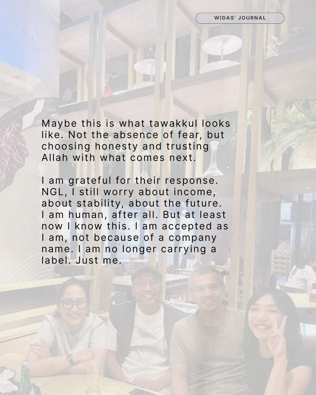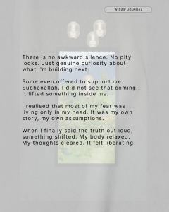 There is no awkward silence. No pity looks. Just genuine curiosity about what I’m building next. Some even offered to support me. Subhanallah, I did not see that coming. It lifted something inside me.