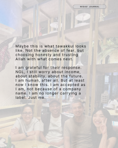 Maybe this is what tawakkul looks like. Not the absence of fear, but choosing honesty and trusting Allah with what comes next.