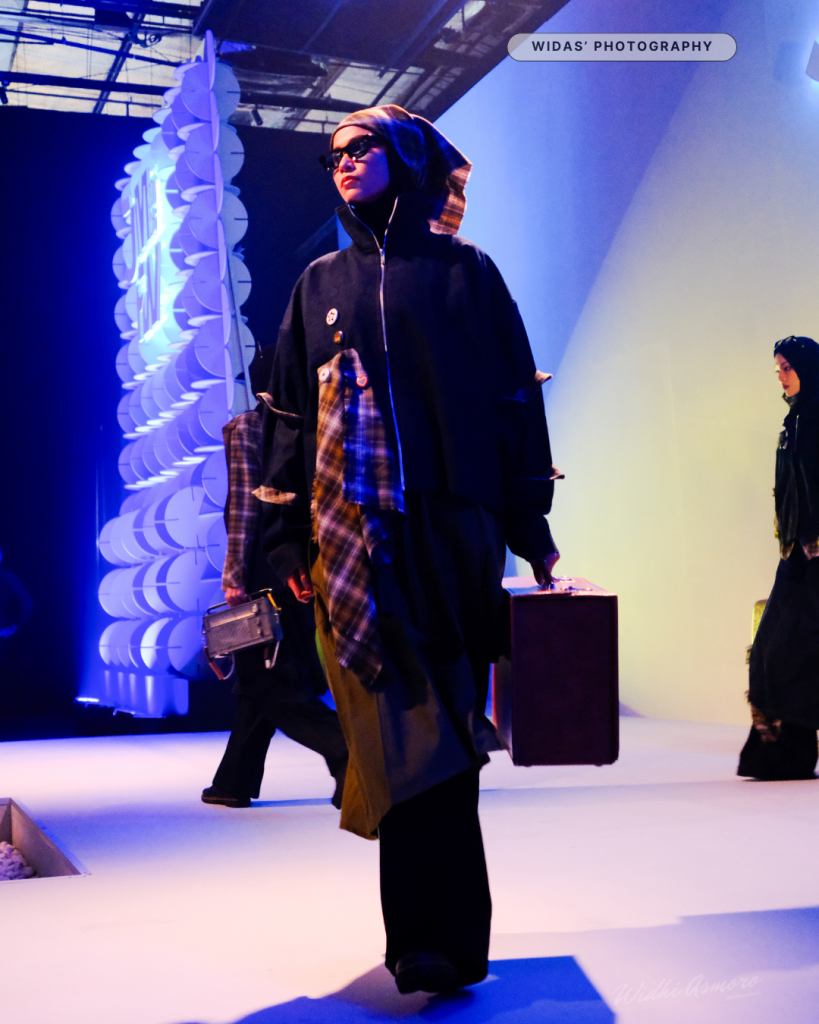 The lineup offers a moody, forward-looking take on modest wear, perfect for Gen Z’s love of oversized shapes and creative layering. Distressed plaid patches add a soft grunge touch, frayed as if reclaimed and worn asymmetrically to break the darkness with movement and ease.